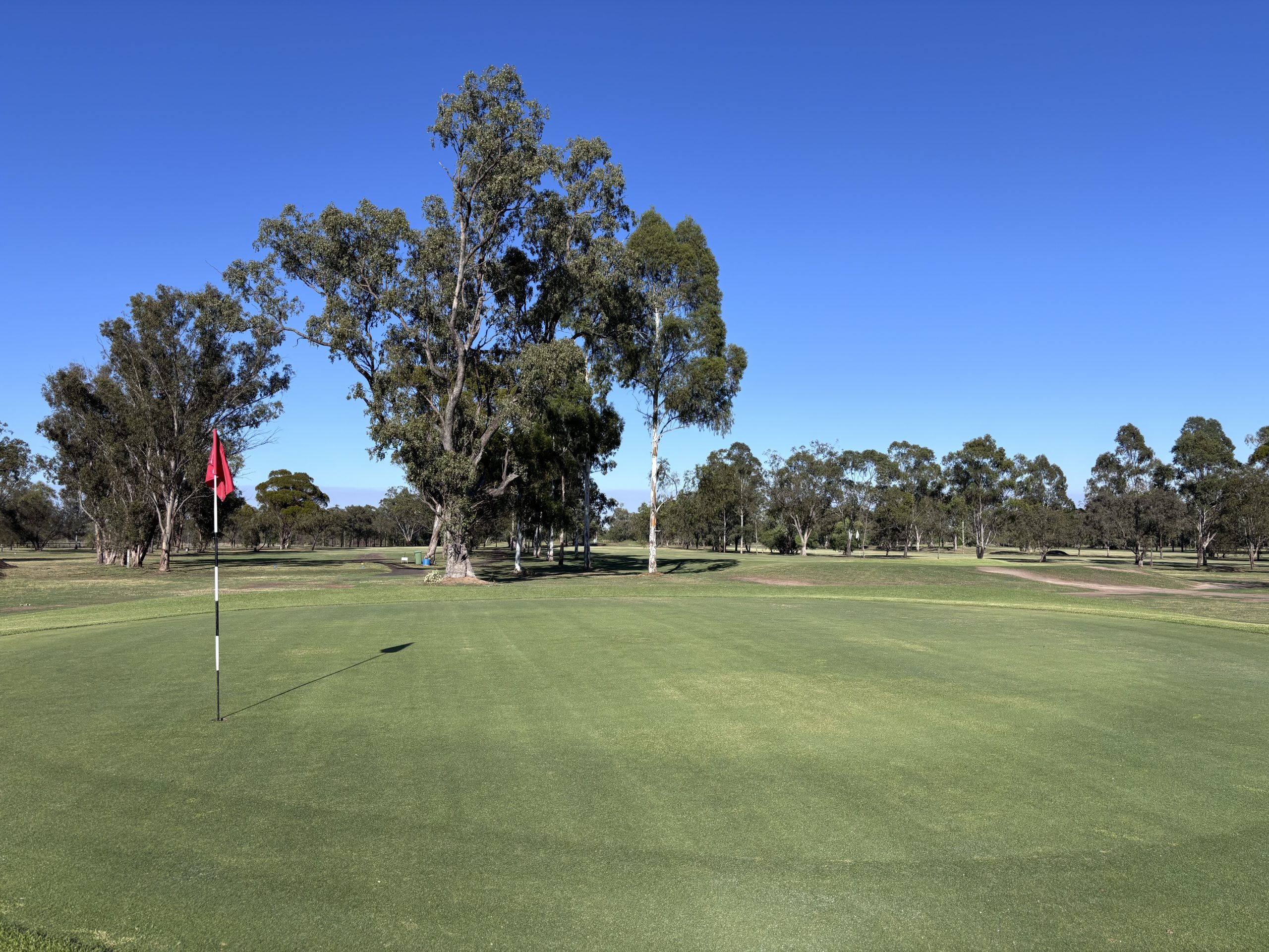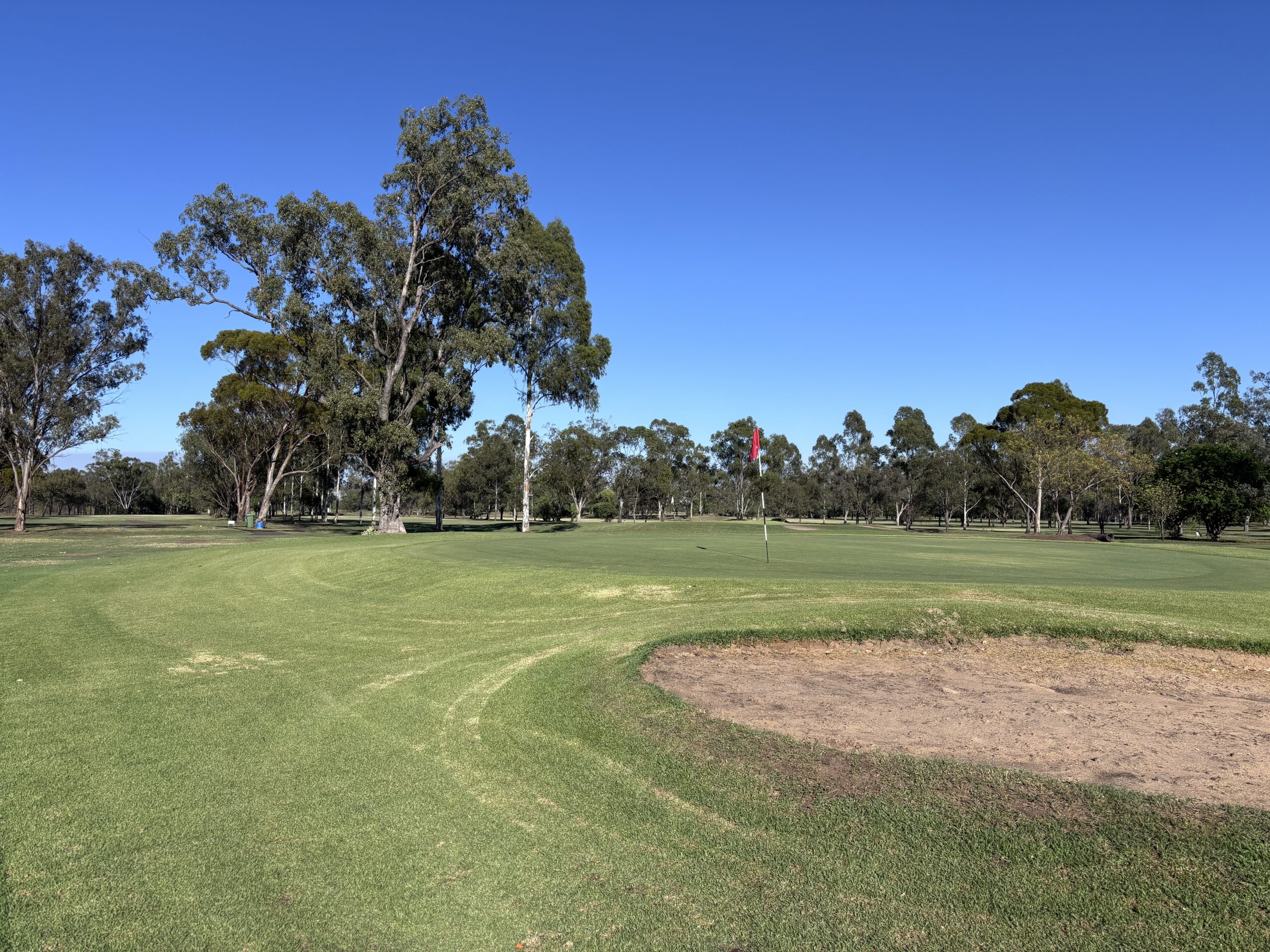 An open right hand dog-leg needing an accurate drive to score well. Keep to the centre left of the fairway to avoid being hindered by the tree-lines either side. The green is guarded by a small bunker at the left front edge.