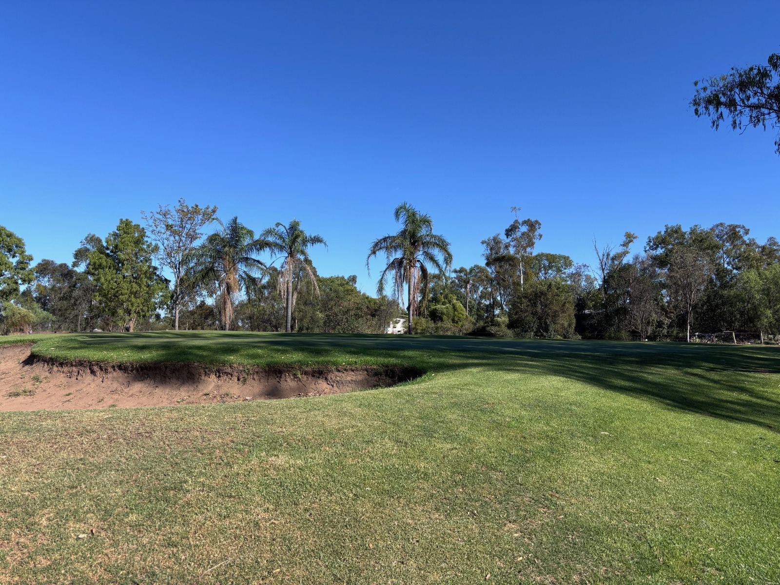 A notorious but picturesque hole and one which demands precision from the tee. This hole is protected by a bunker front left and huge gums to the right. Out of Bounds behind the hole and thick bush to the right make this an extremely difficult Par 3.
